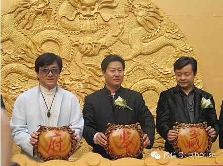 Naga上院豪宅开盘仪式上,成龙和御嘉置地集团总裁李建国。