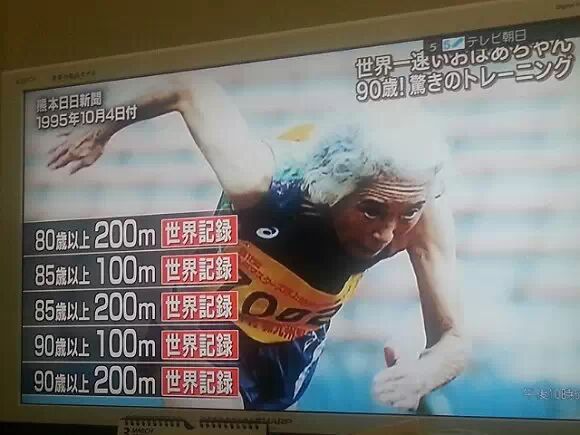 85岁的时候在100米甚至跑出了19秒83、200米45秒65的成绩,都是85-89岁组的世界纪录。